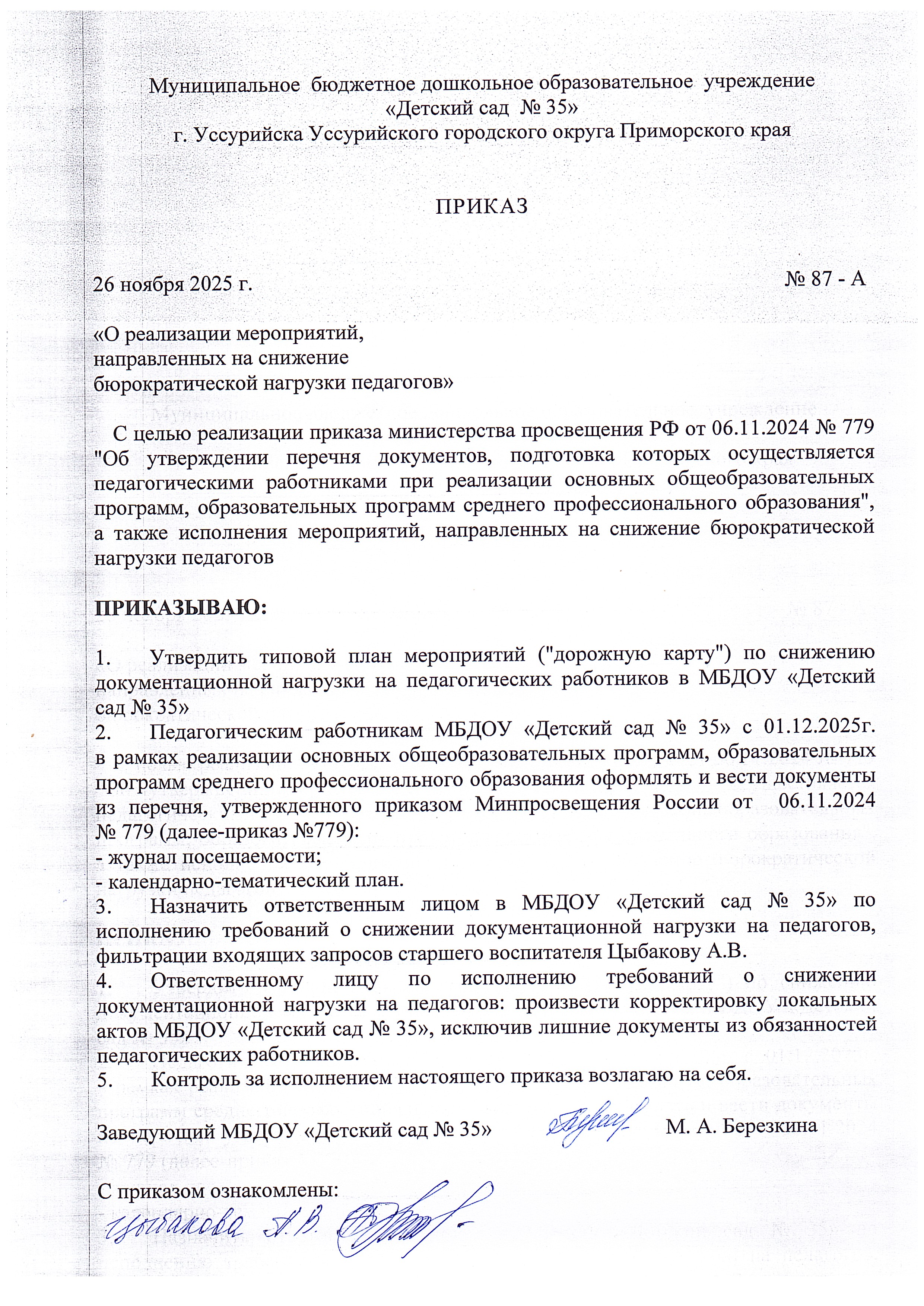 План мероприятий по снижению бюрократической нагрузки на педагогических работников МБДОУ "Детский сад № 35"